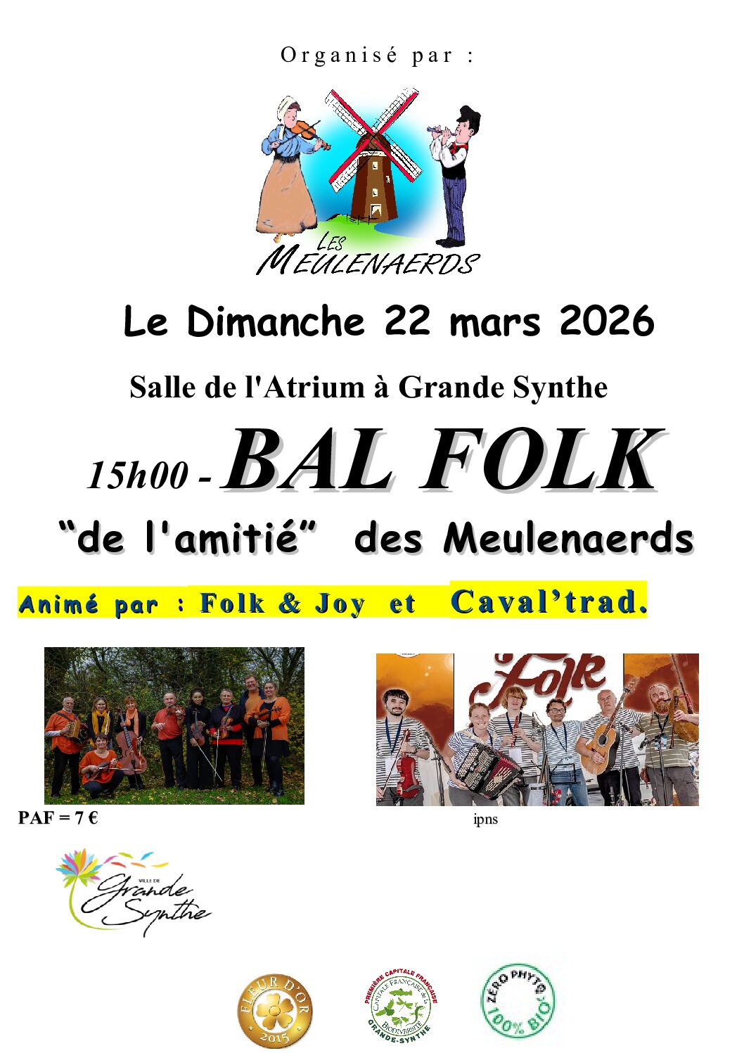 Les Meulenaerds organisent leur bal folk de l’Amitié le dimanche 22 mars 2026 à l’Atrium de Grande-Synthe.